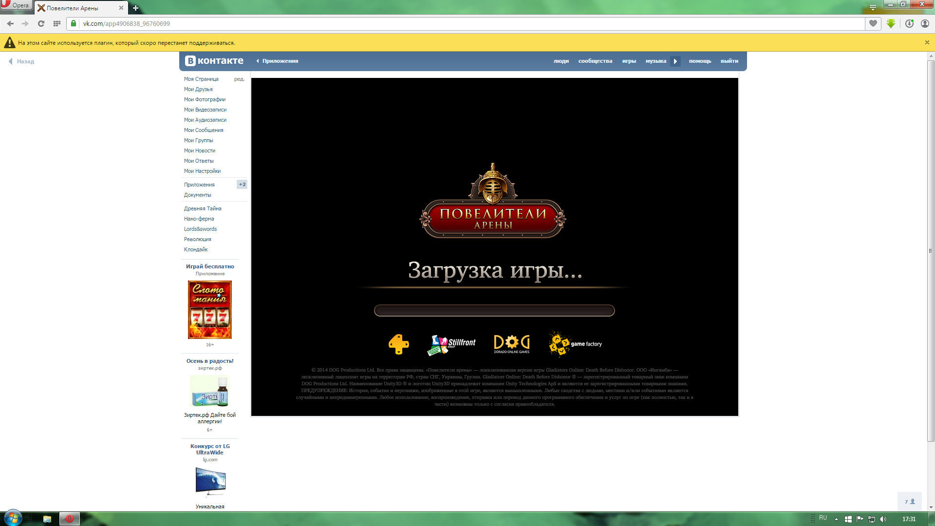 в вк два дня назад перестала загружаться игра(((пробовал уже всё,пишет про плагин который перестал поддерживаться(((
